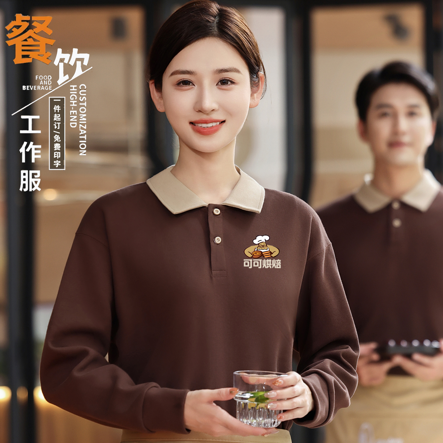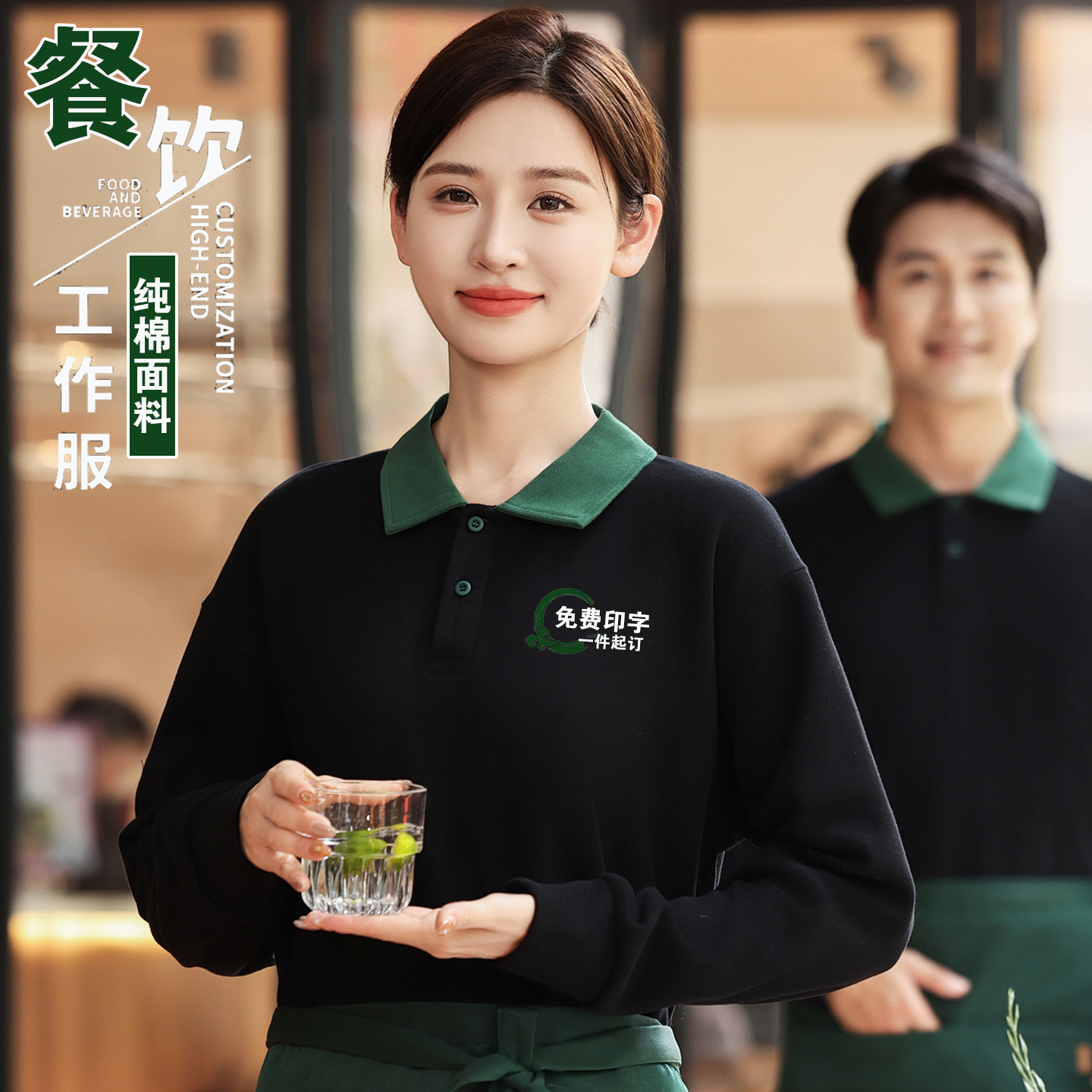 纯棉餐饮服务员工作服卫衣定制火锅烧烤饭店奶茶店超市加绒工装 冬
