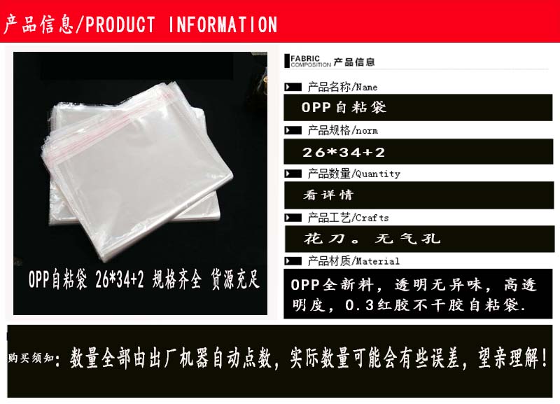 袋服装 34cmOPP透明包装 粘口袋零件袋台历袋 双面4丝自粘袋