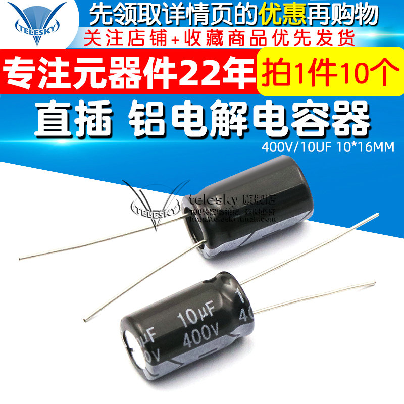 10UF 10个 电解电容 铝电解电容器 400V 直插 TELESKY 16MM