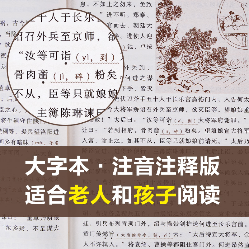 生字注解四大名著之三国演义 原著原版 学生版 无障碍阅读 三国演义完整无删减文学小说 三国演义大字本 中国古典历史小说 注释版