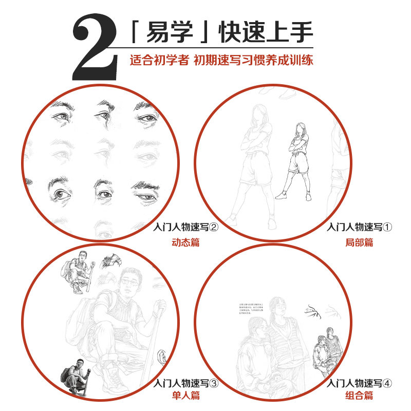 入门人物速写描摹本4本装 绘画素描书美术生艺考速写训练基础教材临摹范本