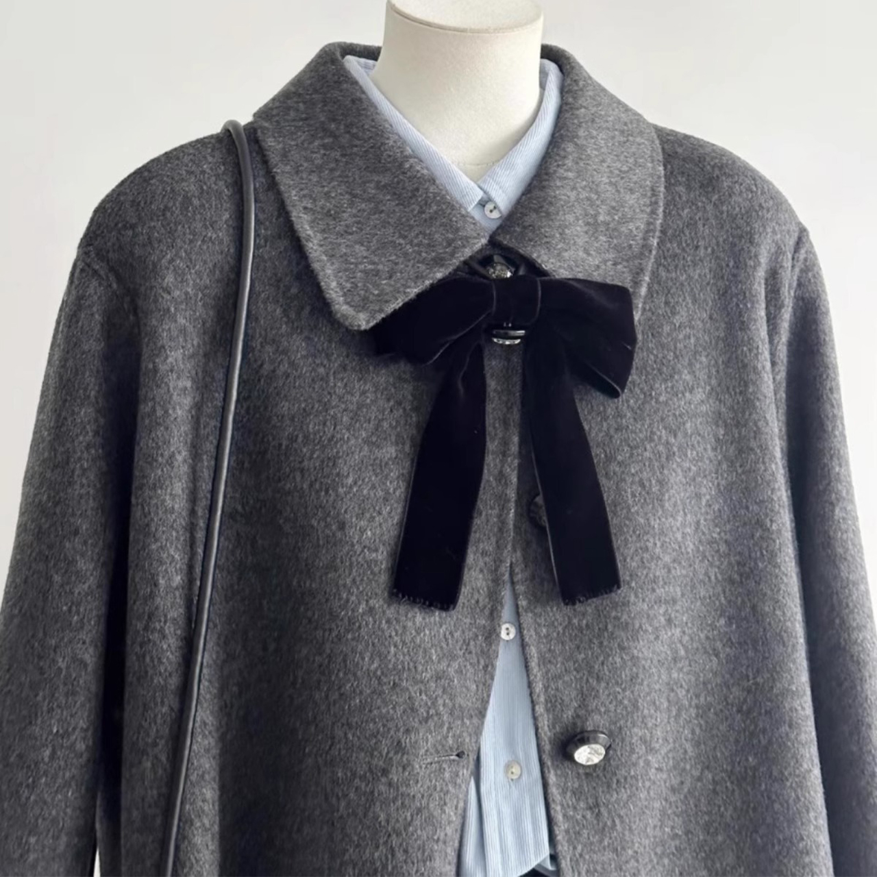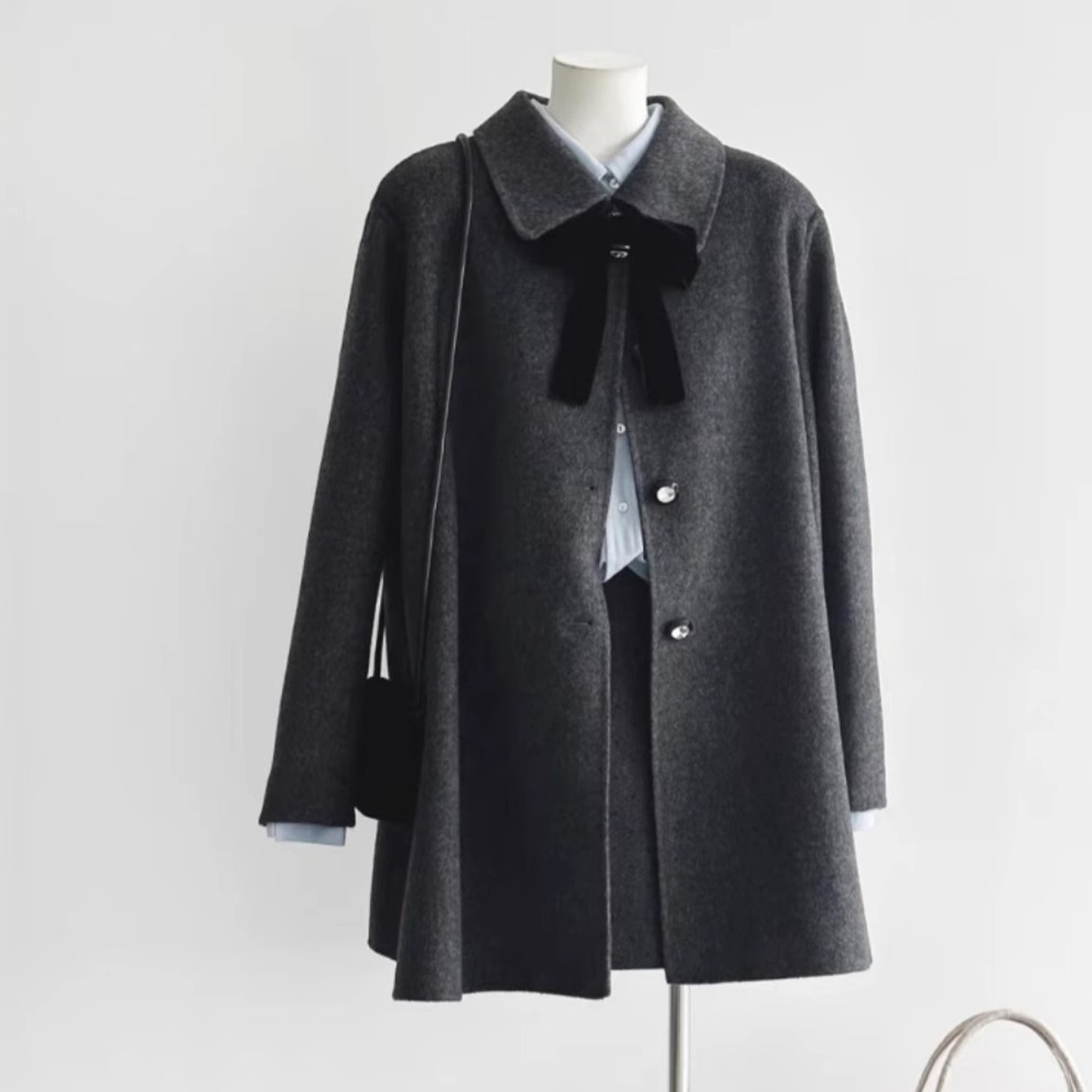 气质优雅百搭通勤外套 新款 秋水伊人宽松西装 领毛呢大衣女2025冬季