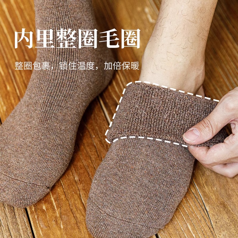 厚袜子男士 加厚保暖毛圈袜纯棉毛巾袜睡觉长筒袜发热 中筒袜秋冬款