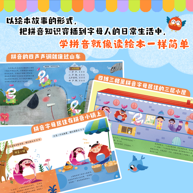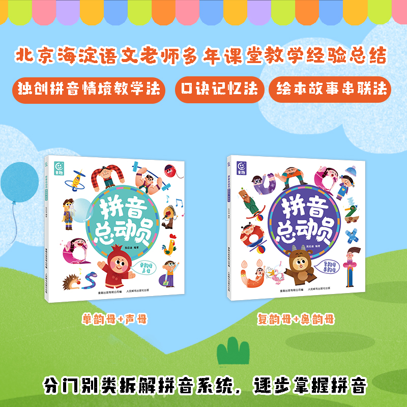 北京海淀一线语文老师多年课堂教学经验 张启迪著 幼小衔接低幼启蒙绘本故事书趣味游戏拼音启蒙绘本 全2册 拼音总动员