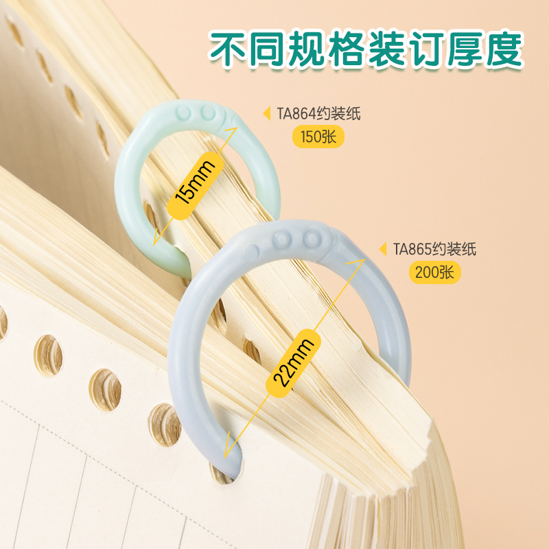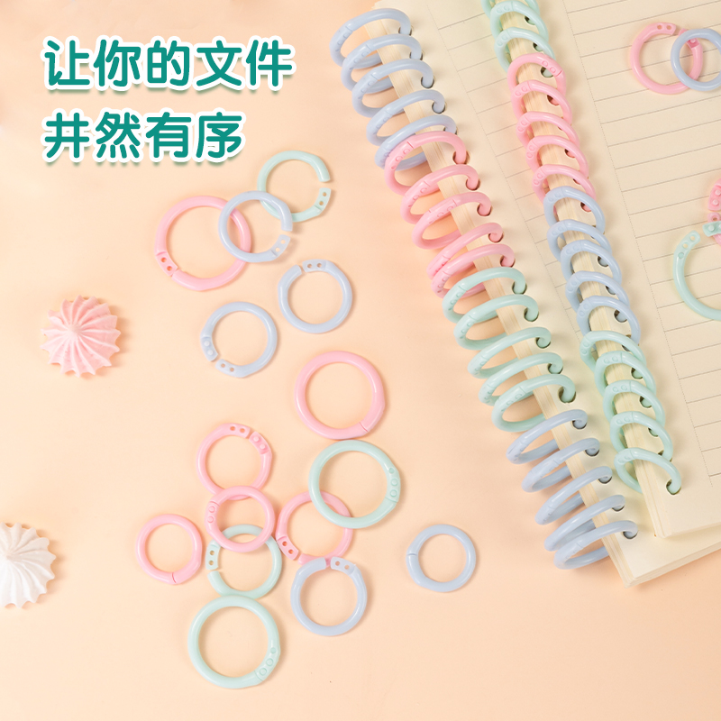 得力彩色活页扣环扣圈可拆卸塑料文件扣环装 订环办公封面活页纸固定扣 订圈活页夹环线圈环打孔器学生书本装