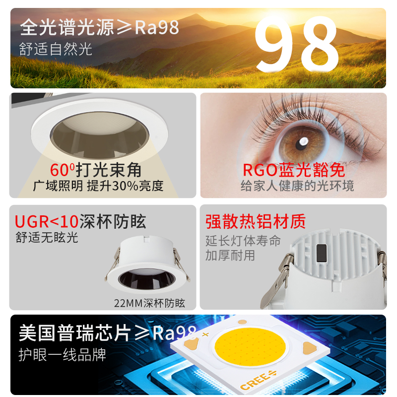 全光谱筒灯护眼led嵌入式 家用防眩洞灯天花灯客厅无主灯走廊过道