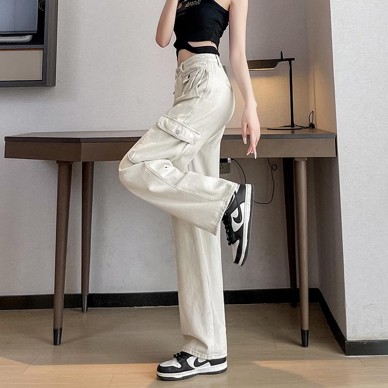 2025新款 女秋季 九分裤 子休闲女裤 米白色牛仔裤 小个子法棍裤 直筒裤