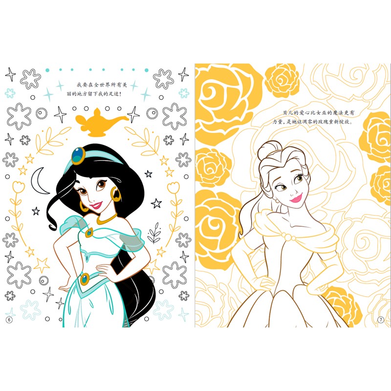 迪士尼公主白雪公主小美人鱼爱丽儿贝儿女孩儿童 迪士尼公主亮闪闪创意涂色书 宝宝学画画解压玩具 6岁幼儿园绘本 2件39元
