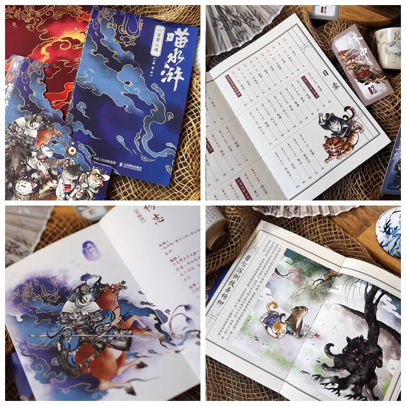 赠别册 水浒传宋代喵星人绘本 关系图折页 喵水浒一百零八将兰钊 水浒梁山好汉关系猫拟人图册四大名著插画设计绘画阅读书 音频