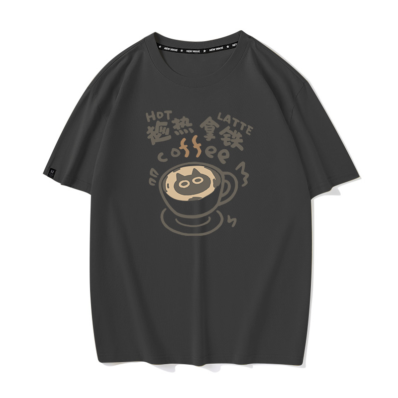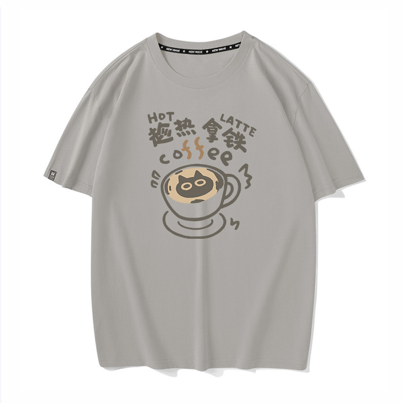 T恤男纯棉日系情侣装 短袖 猫宽松款 秀洛趁热拿铁咖啡猫咪搞笑春季