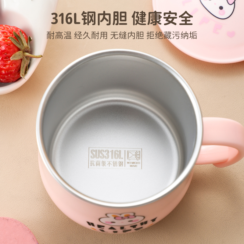 316不锈钢杯子儿童水杯敞口饮水喝水杯家用宝宝牛奶杯带盖马克杯