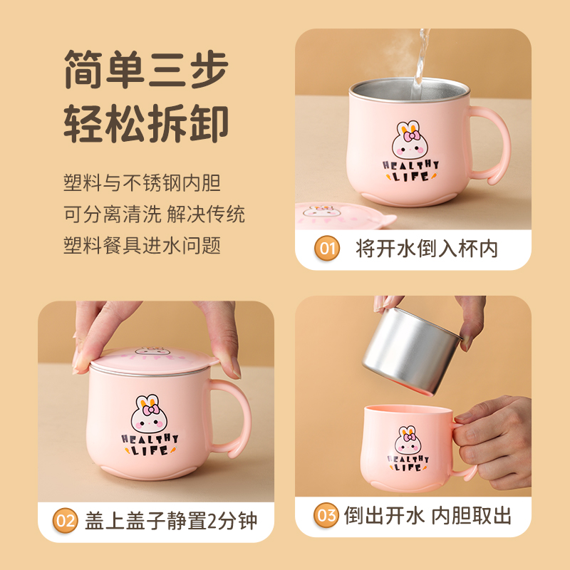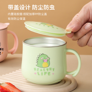 不锈钢马克杯儿童水杯家用防摔杯子带盖杯子上班族学生喝水牛奶杯