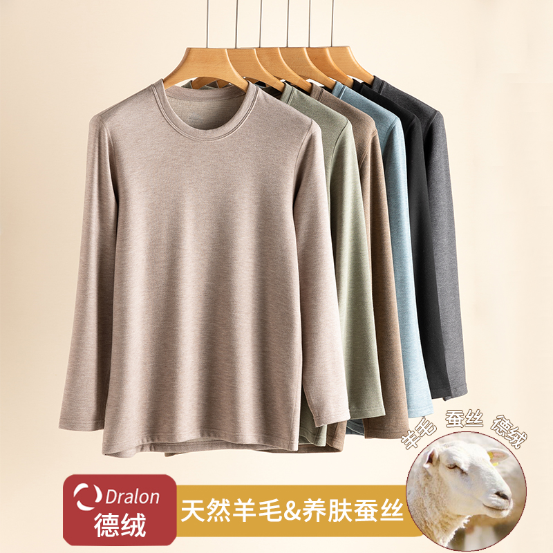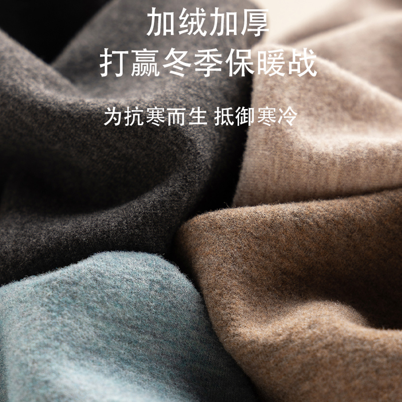 打底冬 加绒加厚羊毛蚕丝秋衣秋裤 德绒保暖内衣男士 爸爸中老年套装