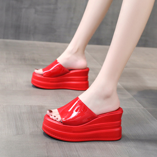 凉拖坡跟厚底增高小个子凉鞋 时尚 女 女夏外穿2025年新款 超高跟拖鞋
