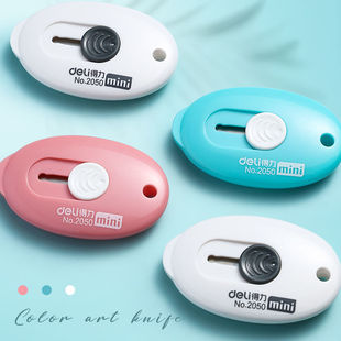 得力迷你美工刀拆快递小刀挂孔设计轻松省力锋利便携学生办公文具