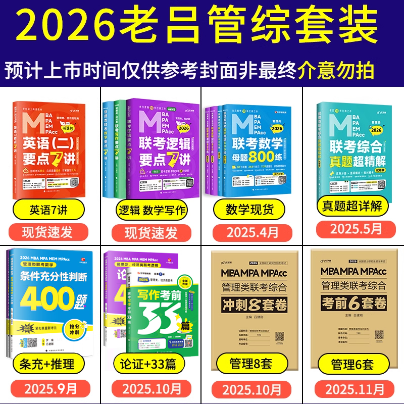 2026老吕逻辑数学要点7讲母题800练罗瑞数学专硕199管理类396经济类联考MBA MPAcc教材搭考研专硕李焕72技 MPA