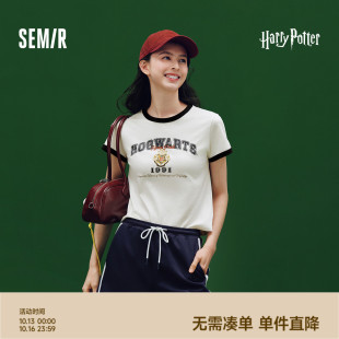 商场同款 修身 森马哈利波特联名短袖 撞色2025新款 夏装 T恤女短款