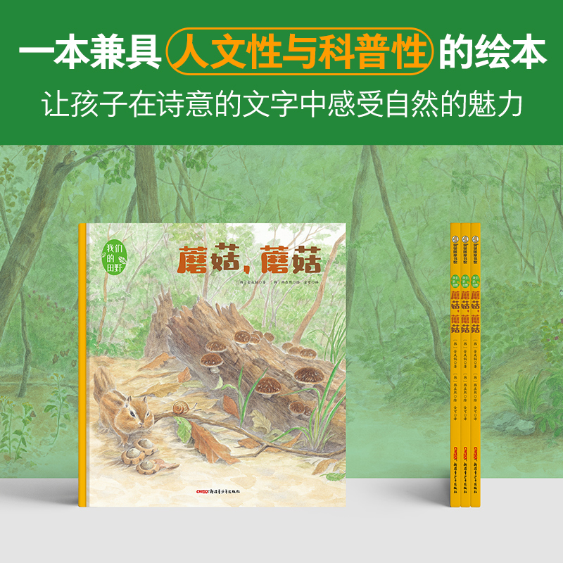 文字中感受感受自然 蘑菇 绘本田野自然风物让孩子在诗意 硬壳绘本一本兼具人文性与科普性 魅力小学生课外阅读书籍 精装