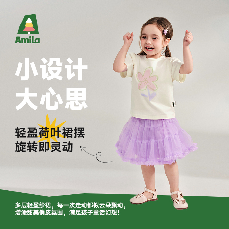新款 ...裙子女2025秋季 格纹木耳边拼接半身裙498077 and niko