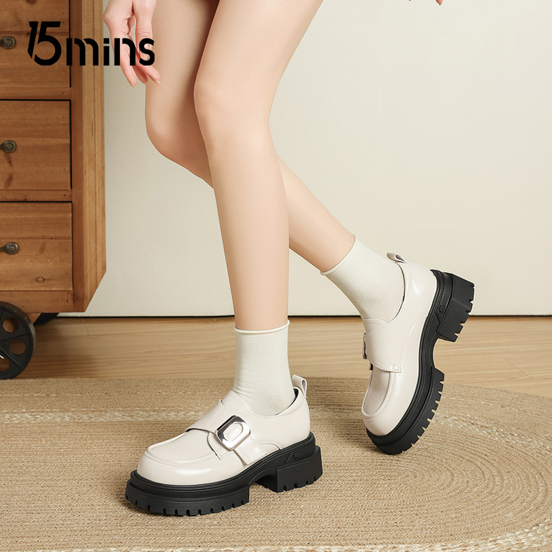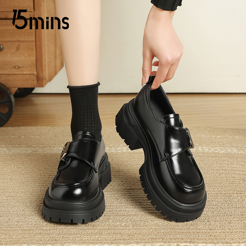 厚底漆皮乐福鞋 春秋一脚蹬单鞋 女士2025新款 15mins黑色亮面小皮鞋