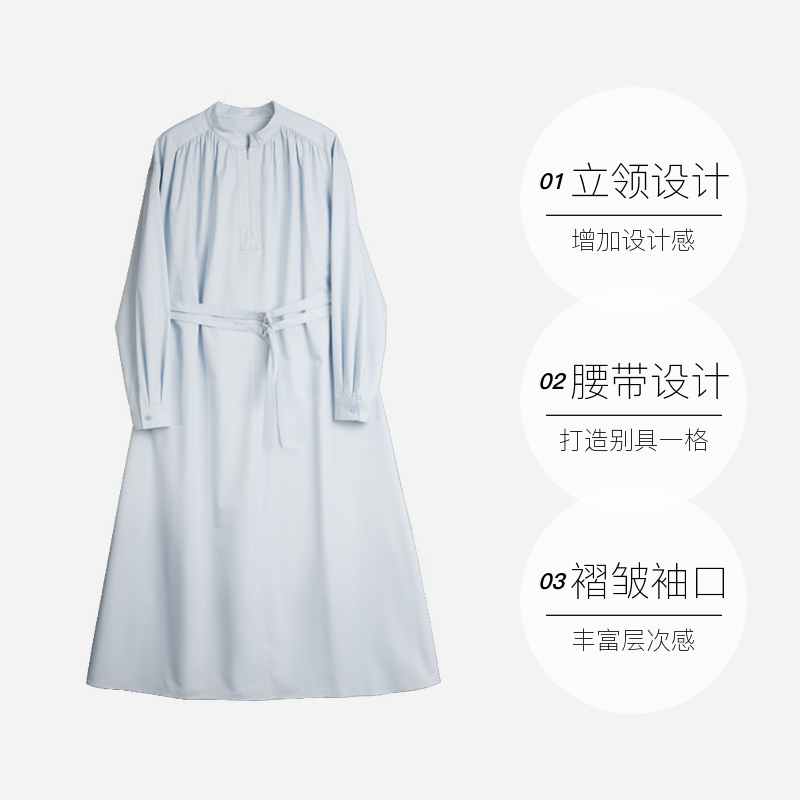 学院风蓝色娃娃领连衣裙女长袖 高级感气质收腰a字裙 春秋2025新款