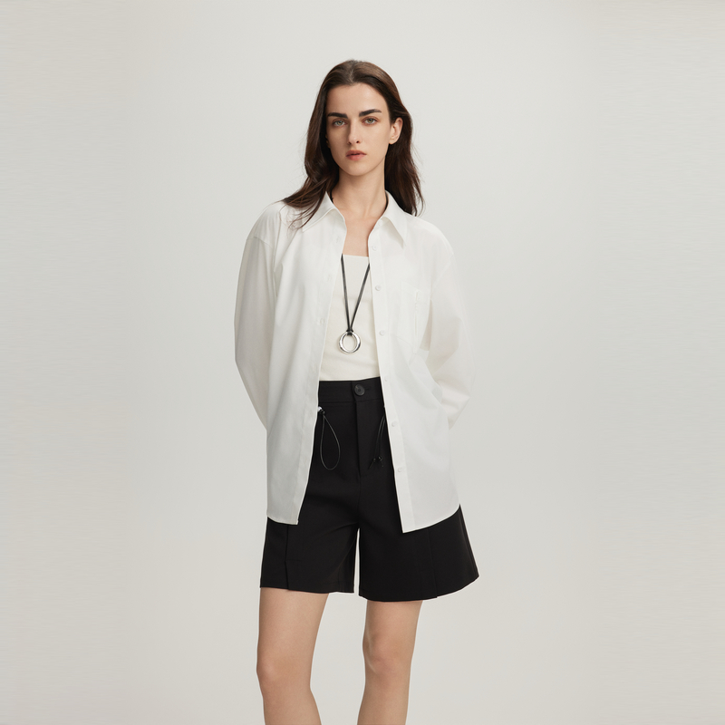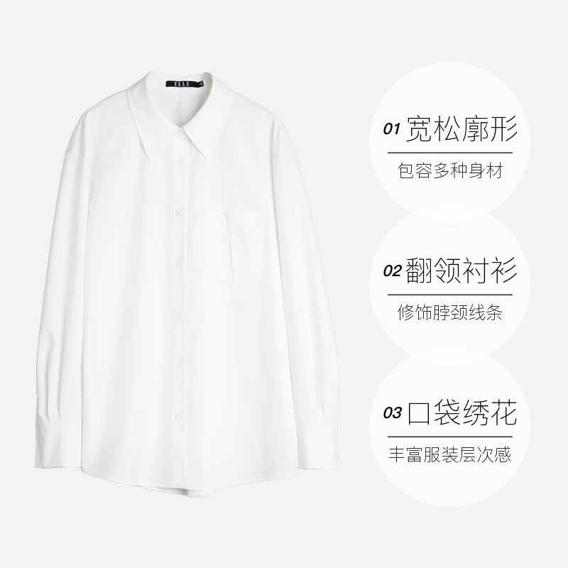 自营 新款 ELLE白色高级感宽松长袖 女2025春季 气质小众上衣 衬衫