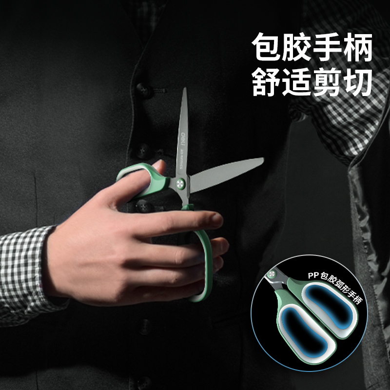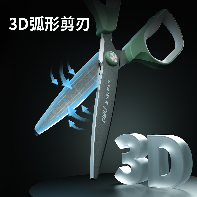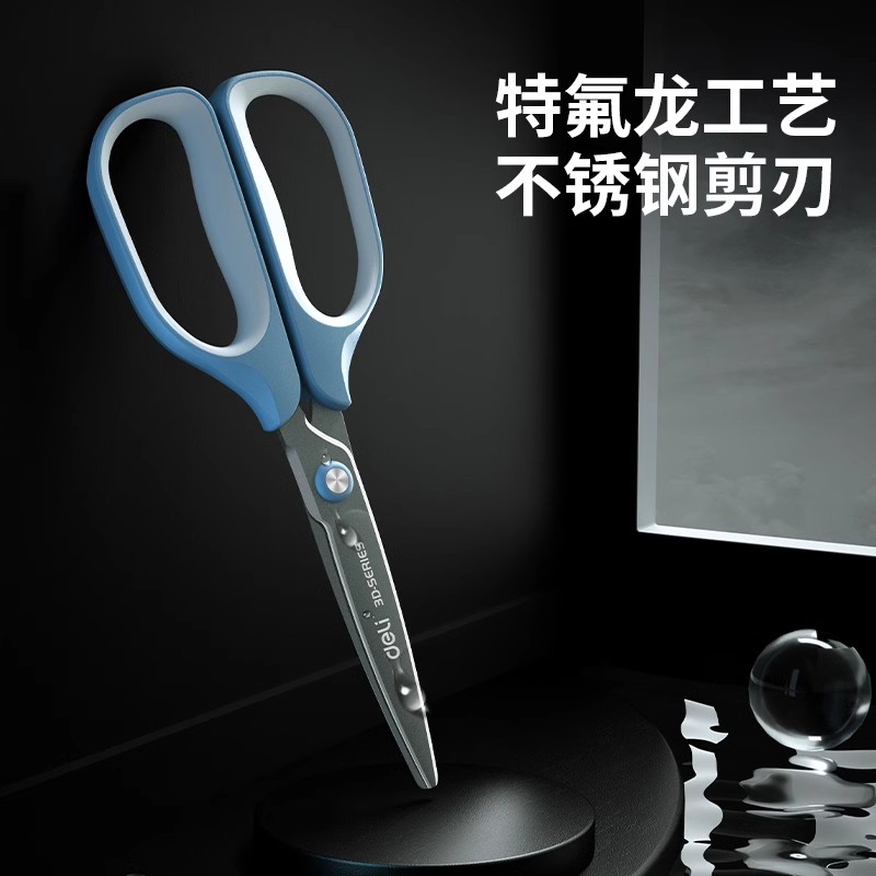 得力黑刃剪刀家用厨房用剪刀3D剪刀手工剪办公剪刀3D剪刃省力剪刀特氟龙涂层不粘胶剪刀学生剪纸锋利剪子