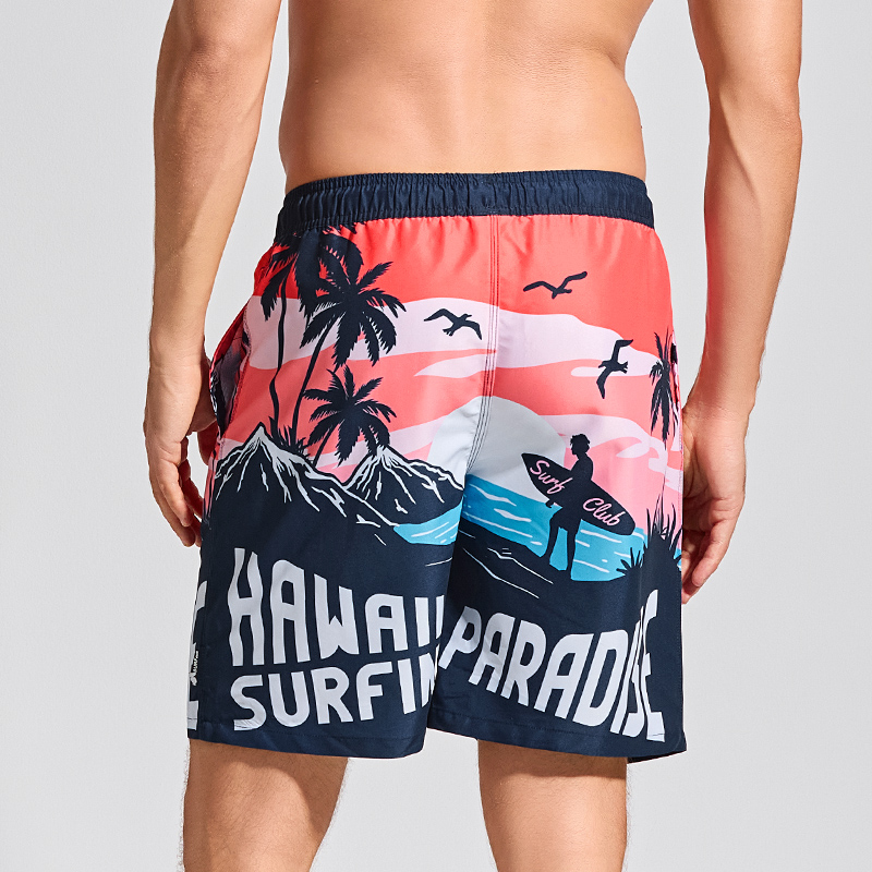 印花可下水游泳裤 时尚 男速干宽松四分短裤 盖浪柔软垂感度假沙滩裤