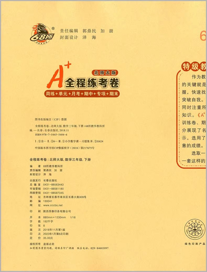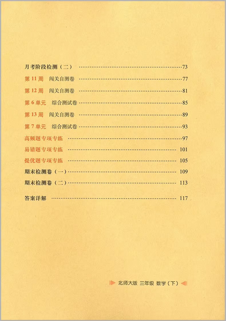 小学3年级下册数学同步练习册周周练单元 全程练考卷三年级下册数学北师大版 月考阶段检测卷期中期末专项复习卷68所名校 2023春季