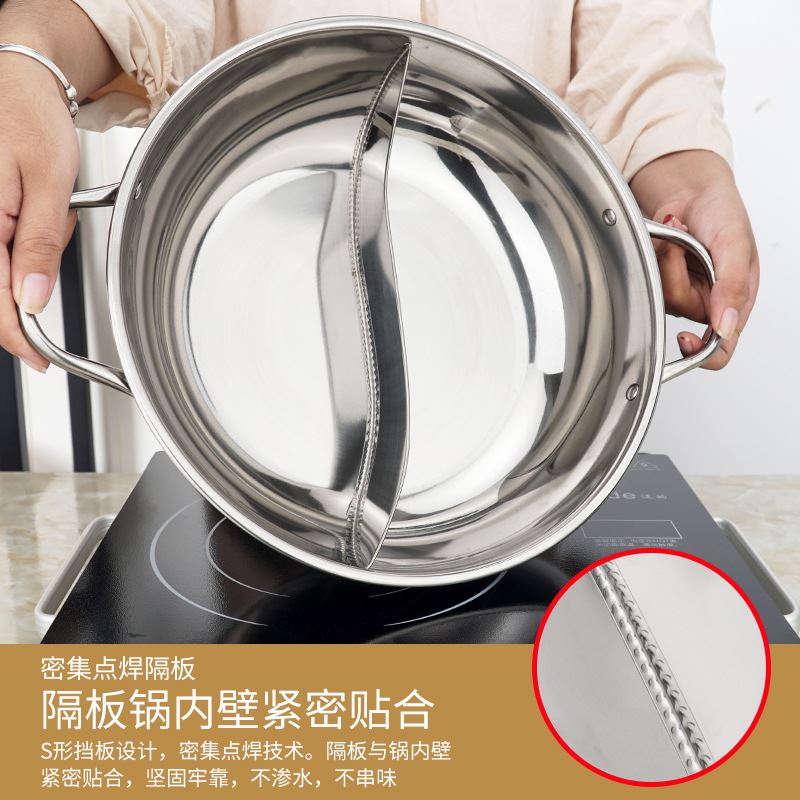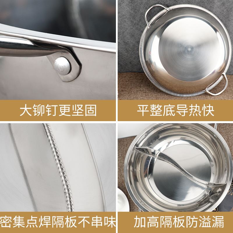 加厚火锅锅不锈钢鸳鸯锅火锅盆商用二味火锅燃气电磁炉专用汤锅