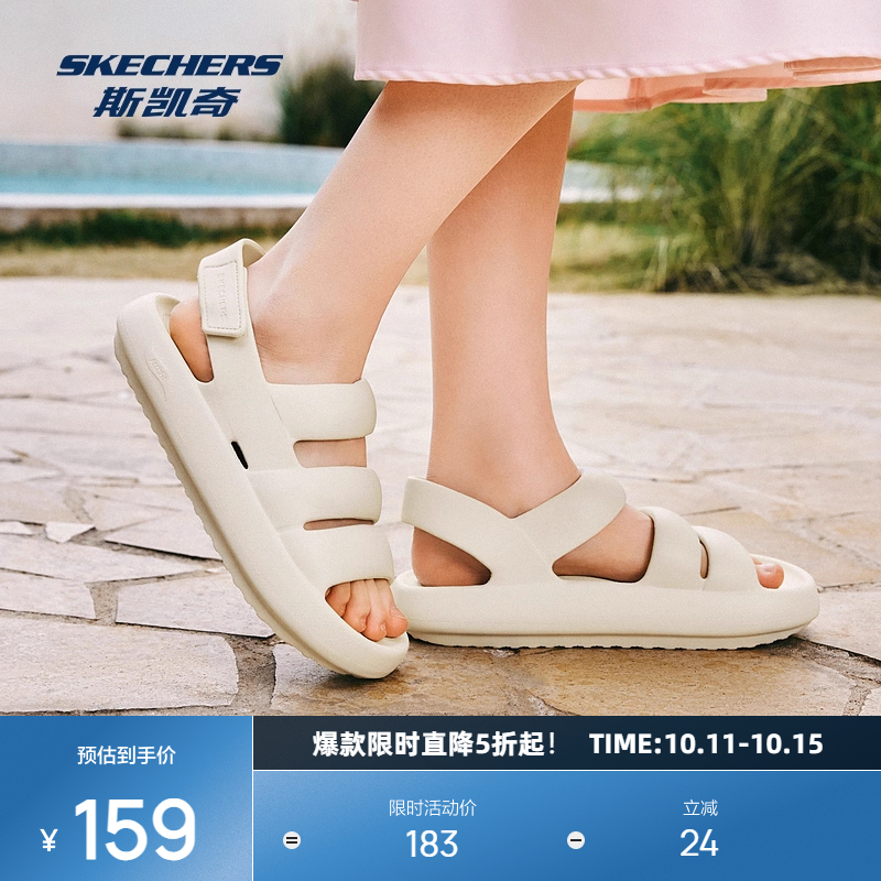 斯凯奇2025年女士运动凉鞋 舒适透气百搭 纯色简约百搭沙滩鞋