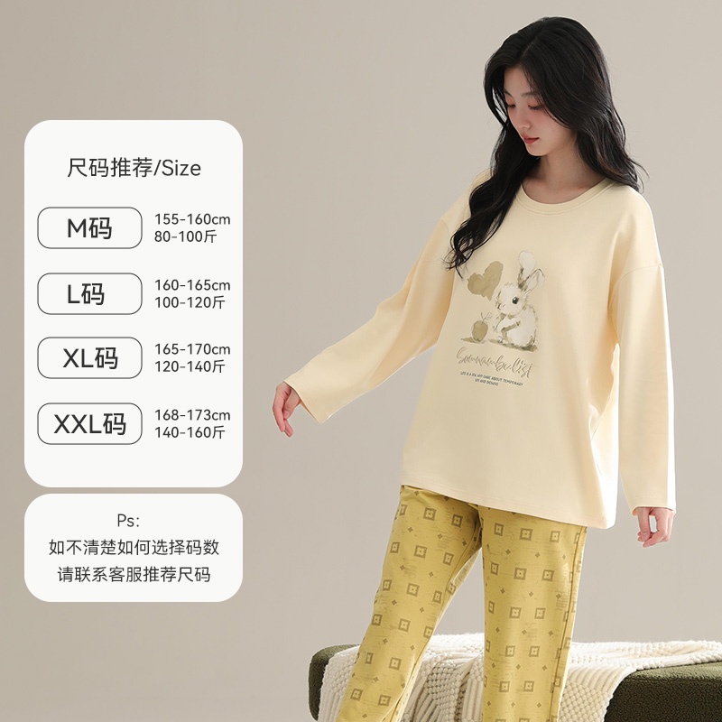 2025新款 可外穿家居服套装 春秋季 长裤 带胸垫长袖 猫人纯棉睡衣女款