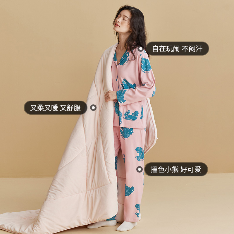 可外穿家居服套装 秋鹿 长袖 纯棉睡衣女秋季 男情侣 超柔软5A抑菌