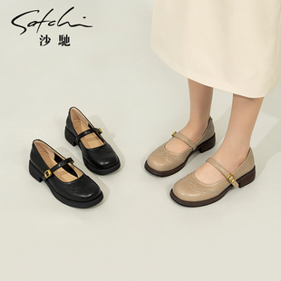 鞋 玛丽珍小皮鞋 法式 新款 子中跟圆头 黑色百搭日系厚底女2025夏季