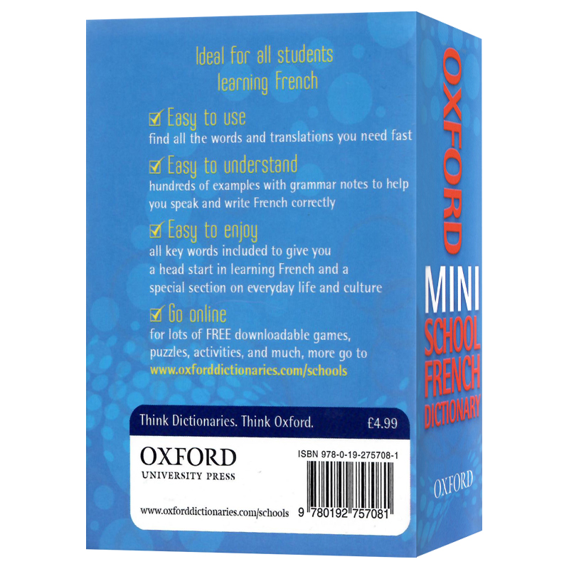 School Mini French Dictionary儿童课外学习用书口袋书设计Oxford Press 牛津迷你学校法语词典英文原版 University 工具书Oxford