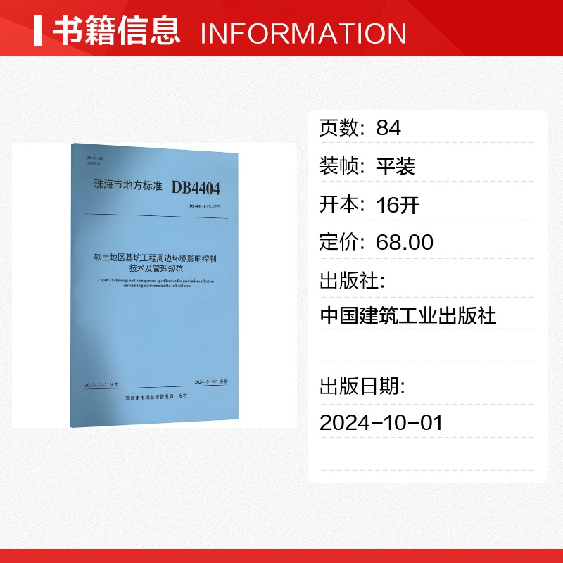 2023 新 DB4404 专业科技 水利 建筑 软土地区基坑工程周边环境影响控制技术及管理规范 珠海市市场监督管理局
