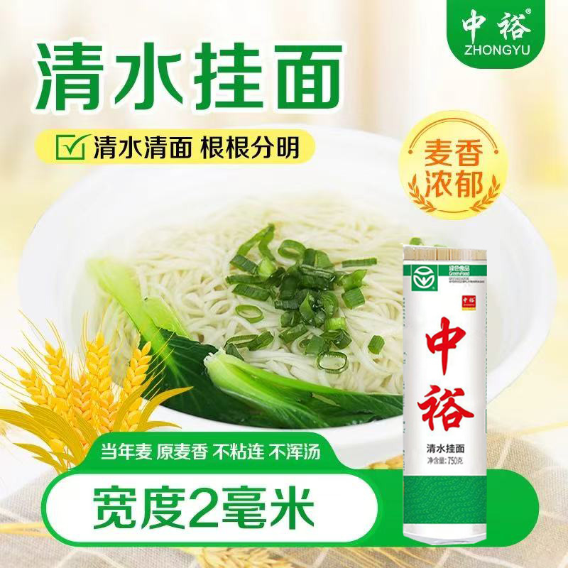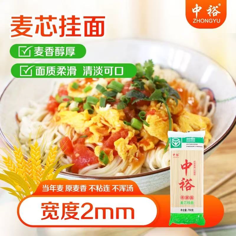中裕面条麦芯挂面750g清水面绿色食品方便速食拌面易煮汤面早餐