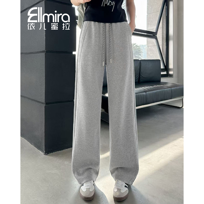 胖mm慵懒风松弛感加绒运动休闲裤 女秋季 子 黑色软糯奶芙阔腿裤 大码