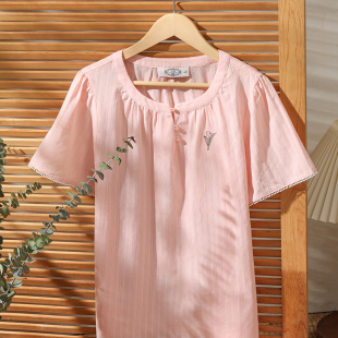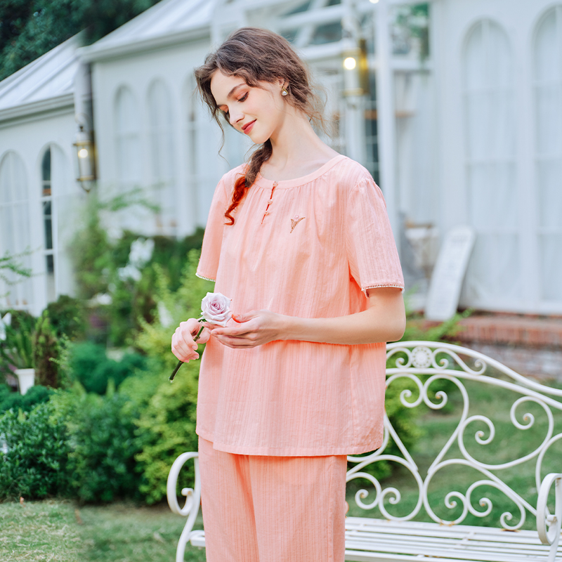 女春夏甜美薄款 纯棉睡衣套装 宽松可外穿全棉质家居服 短袖 美标新款