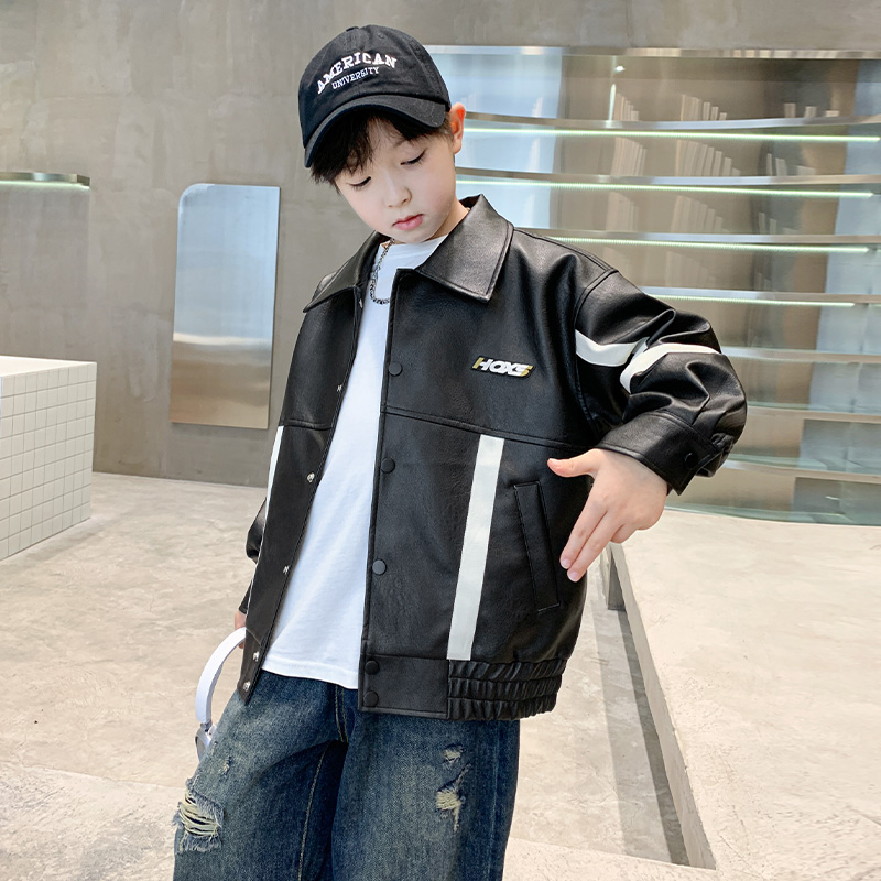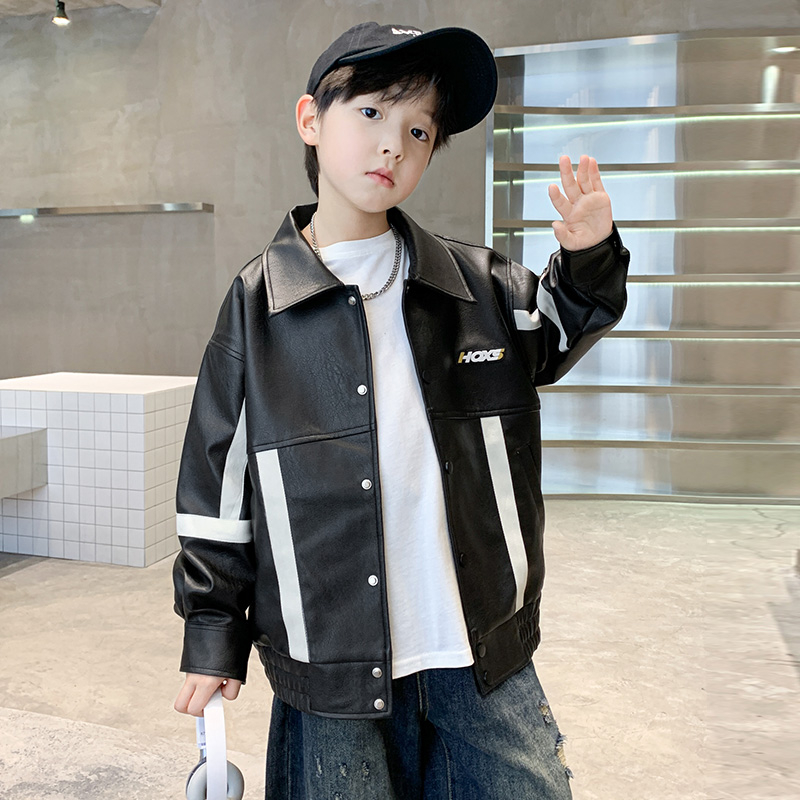 中大童春季 痞帅儿童夹克春装 上衣洋气 2025新款 男童皮衣外套春秋款