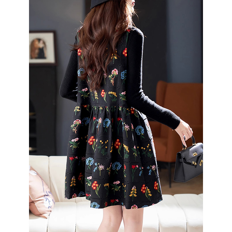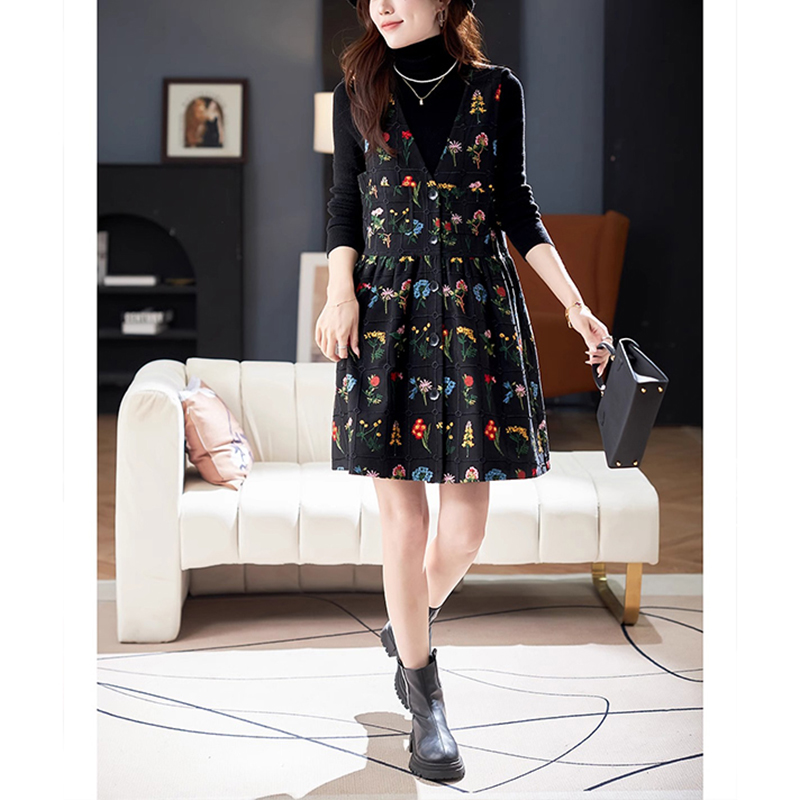 爵莱菲V领气质重工刺绣背心裙2025秋冬韩系气质休闲无袖 A字裙潮