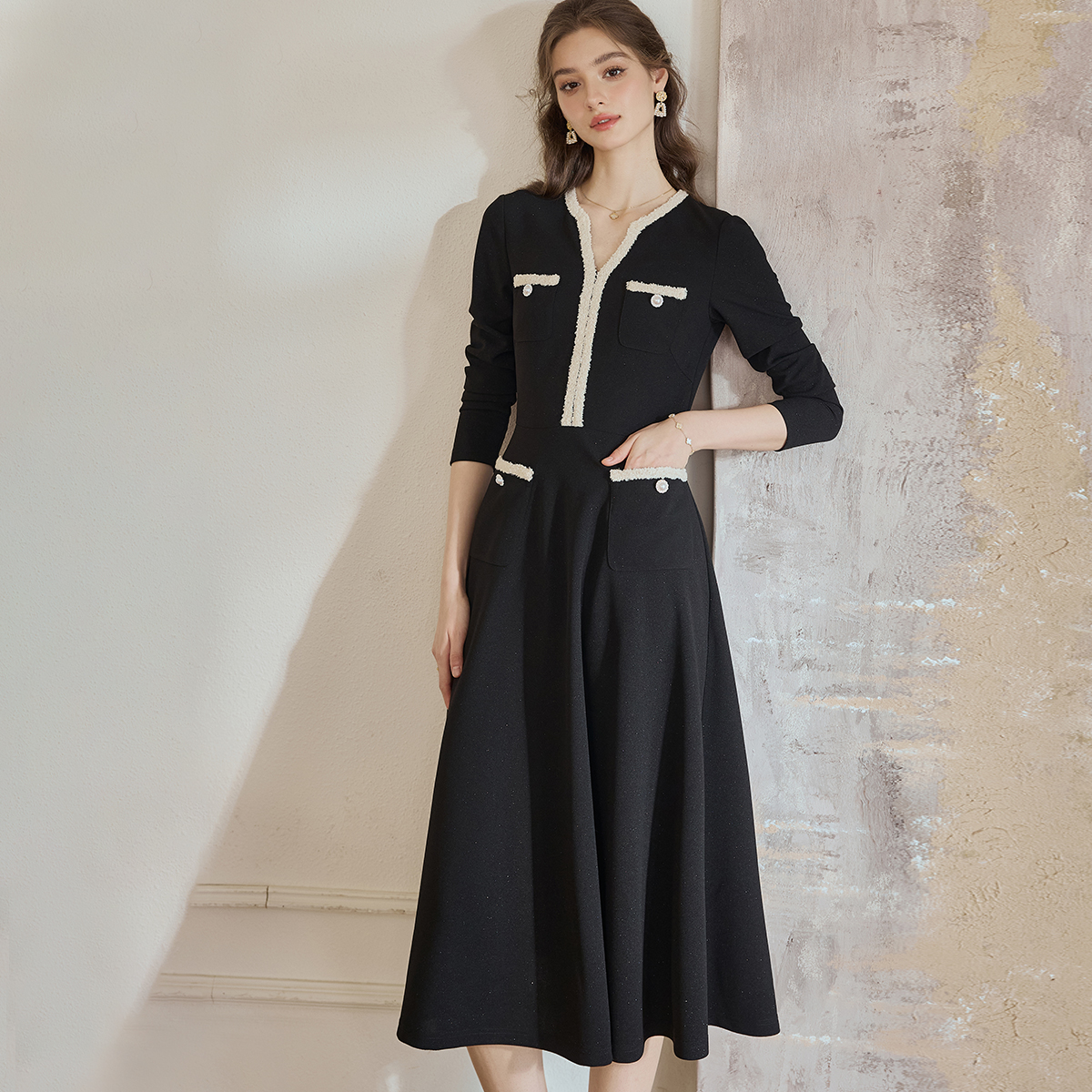 MAXRIENY千金香颂连衣裙刺绣领收腰鱼尾长裙气质感 主题纪念款