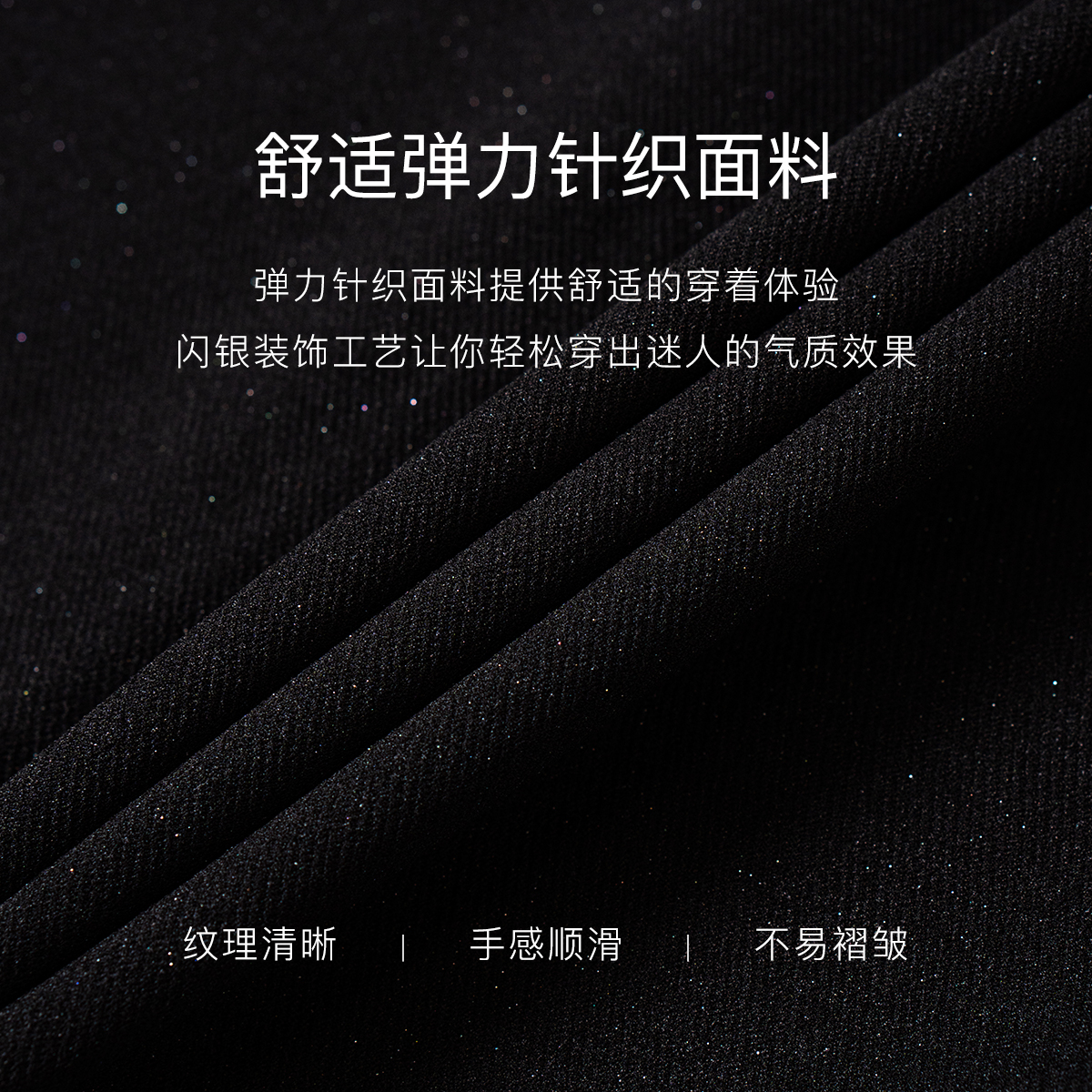 HM女装 圆领休闲垫肩褶皱圣诞节日裙1245453 连衣裙秋季