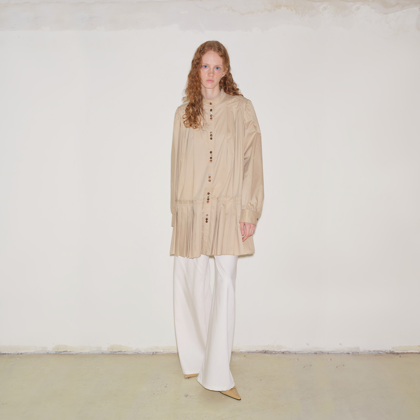裙 连衣裙女极简A字型衬衫 GREEN BELT城市旷野25春全棉百褶衬衫