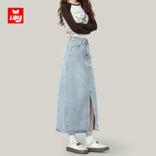高腰开叉牛仔半身裙女2025新款 a字包臀半裙小个子梨形长裙 春夏季