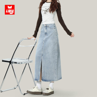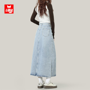 A1GFE2179 开叉长裙女中长款 太平鸟牛仔蓝色半身裙2025夏季 款
