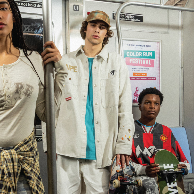 Aape旗舰店男装 B689XXO 25春夏猿人字母刺绣复古简约潮流休闲长裤