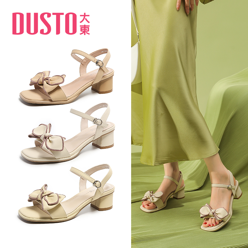 蝴蝶结甜美气质绝美配裙子粗跟方头女 新款 大东一字带凉鞋 2025夏季