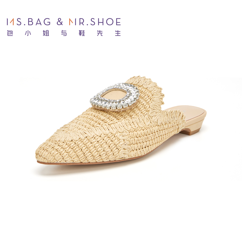 女242294 草原色编织水钻低跟拖鞋 包小姐与鞋 先生夏季