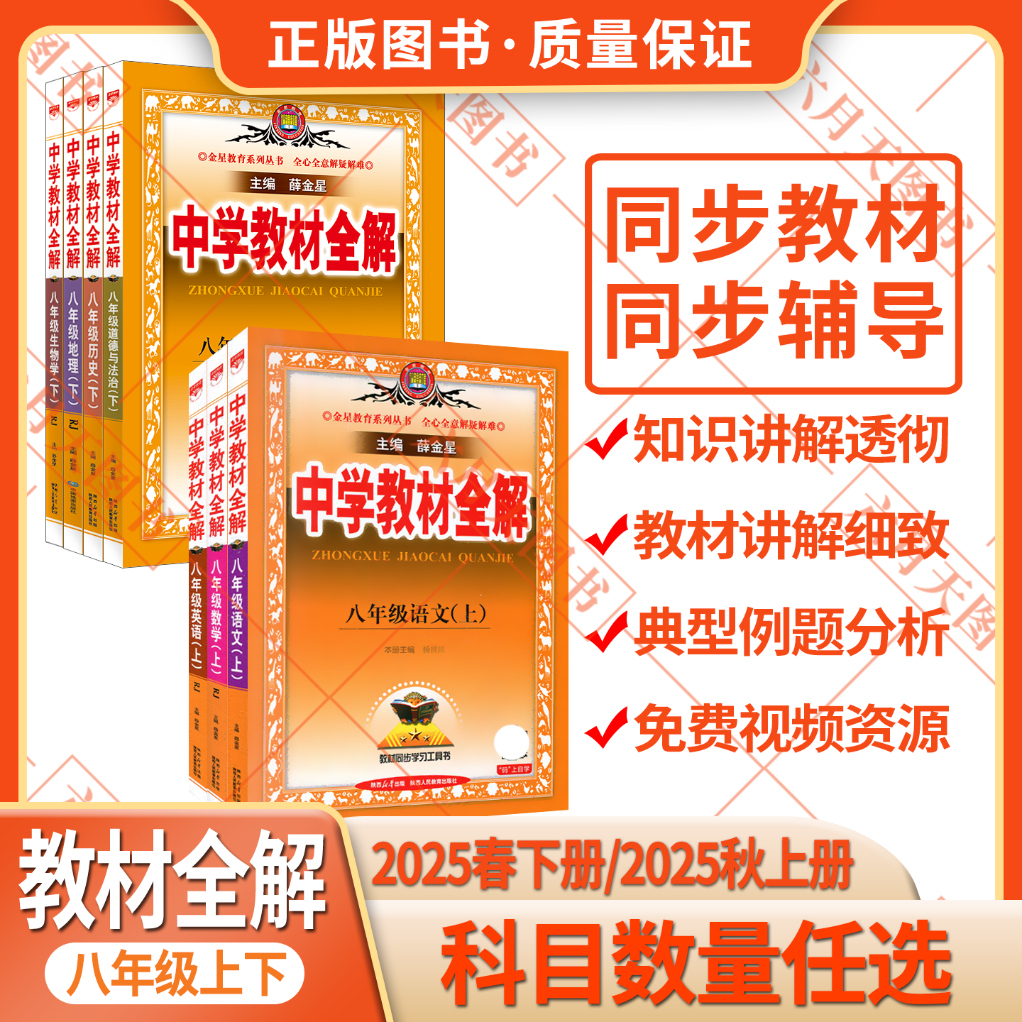 2025秋25春适用任选中学教材全解八年级上册下册语文数学北师沪科粤物理英语译林生物道德历史地理人教薛金星8上初二必刷题解读重